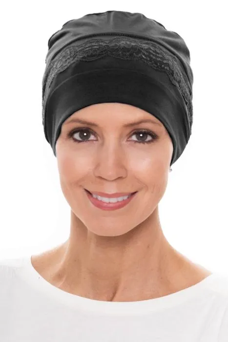 This sleep cap is designed to provide total head coverage, making it ideal for women with hair loss due to cancer, chemotherapy, alopecia, or other types of medical hair loss conditions. Trimmed in delicate lace, this cap is ultra feminine and will keep you looking and feeling beautiful throughout the night! It’s also a great choice for wearing out and about with casual attire, as the elegant lace trim is a great accent for many different outfit choices.
