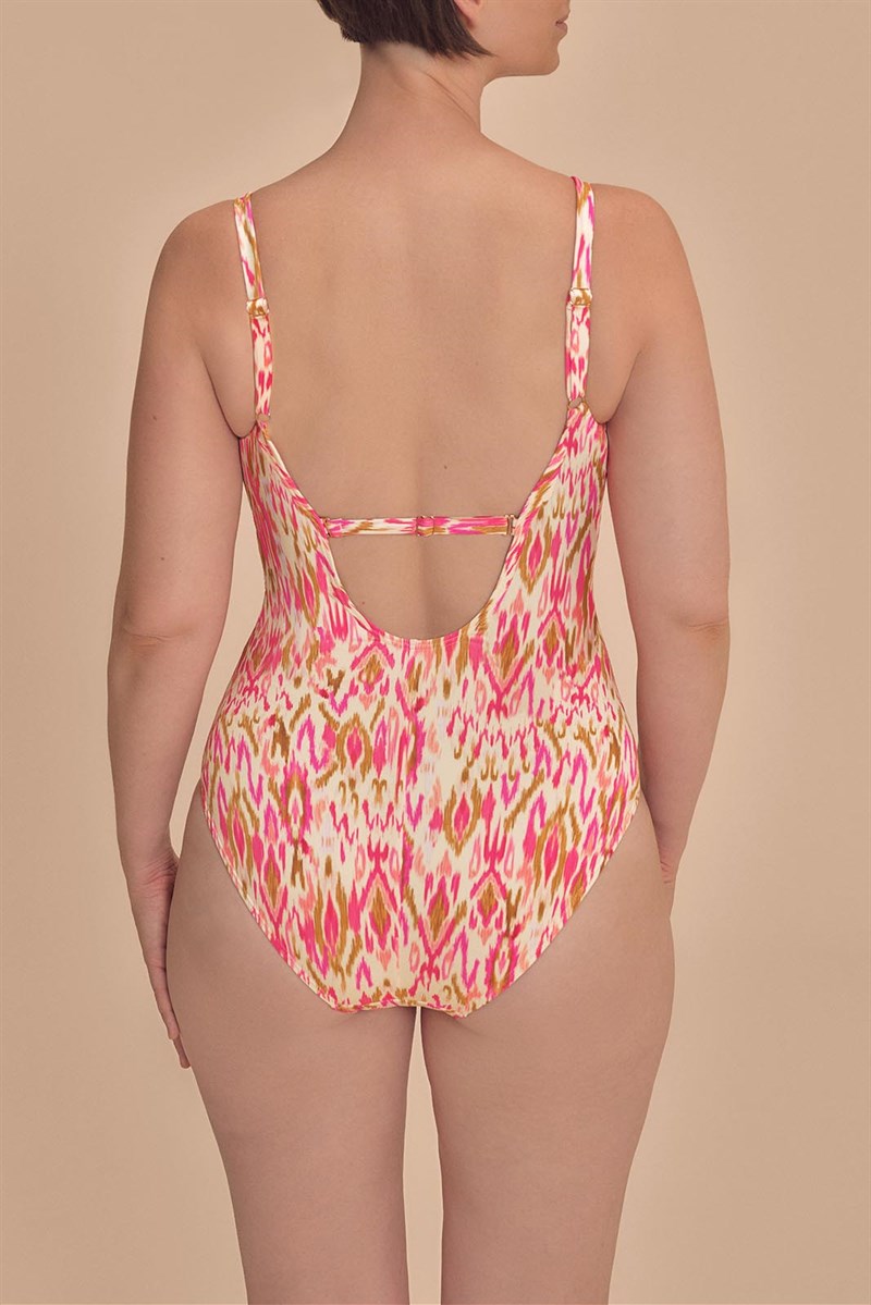 Ikat-inspired print in pink and earth tones