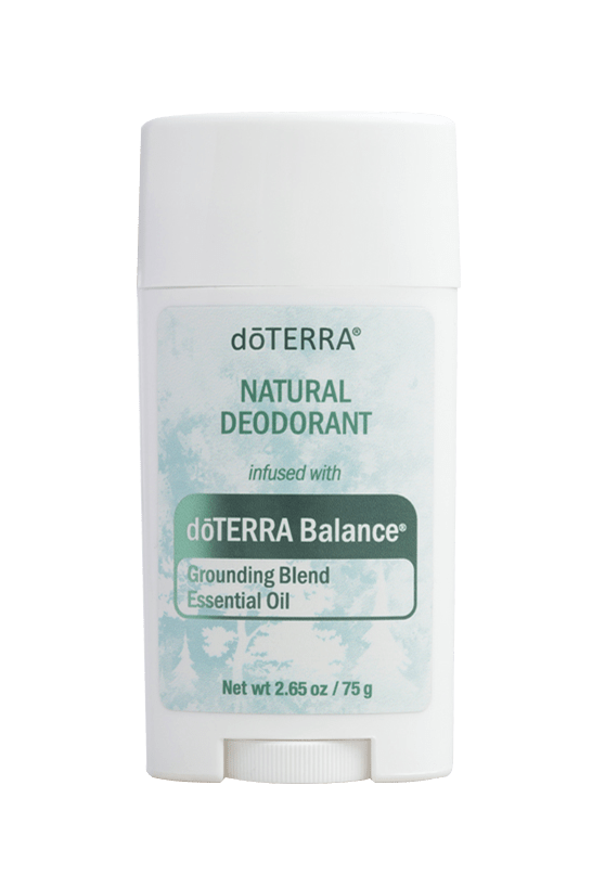 Natural Deodorant infused with doTERRA Balance® essential oil features a proprietary blend of essential oils, combined with baking soda to actively protect against odor while tapioca absorbs moisture for long-lasting freshness. The warm, woody aroma of doTERRA Balance Grounding Blend creates a sense of calm and well-being to uplift your mood and boost your confidence.